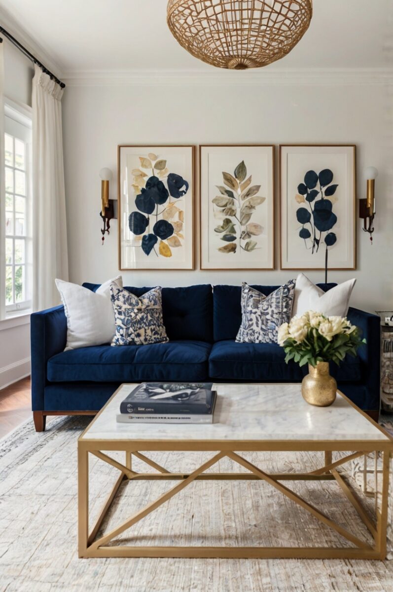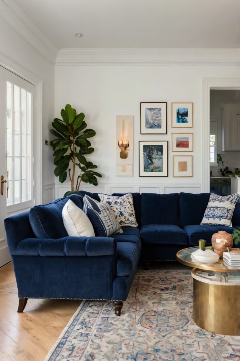 When paired with white walls, a sapphire blue sofa creates a space that feels both invigorating and peaceful β an ideal combination for living areas.