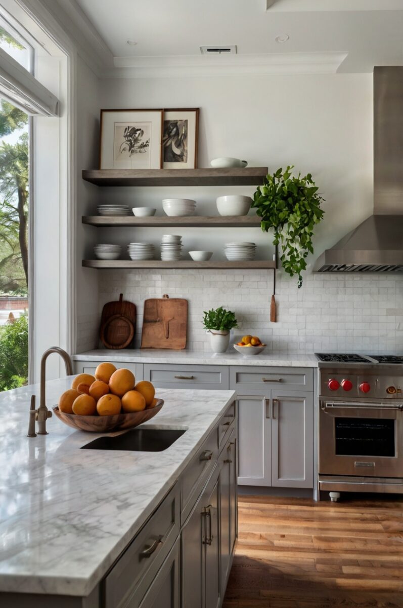 You can add colorful dishes, bright tea towels, or vibrant artwork, and they’ll all pop against the neutral backdrop.