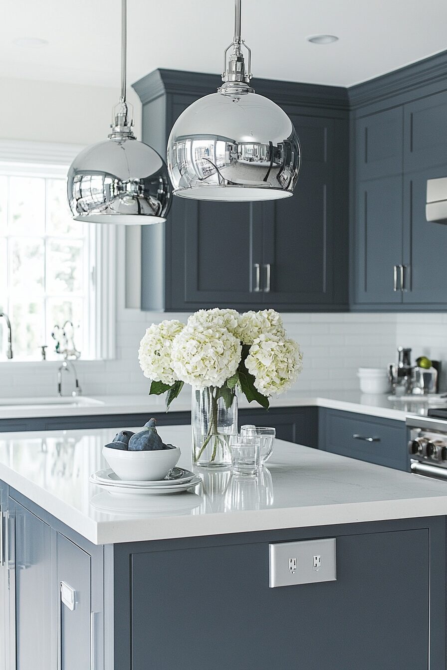 If your cabinets are a darker gray, a lighter blue creates beautiful contrast that highlights both colors.