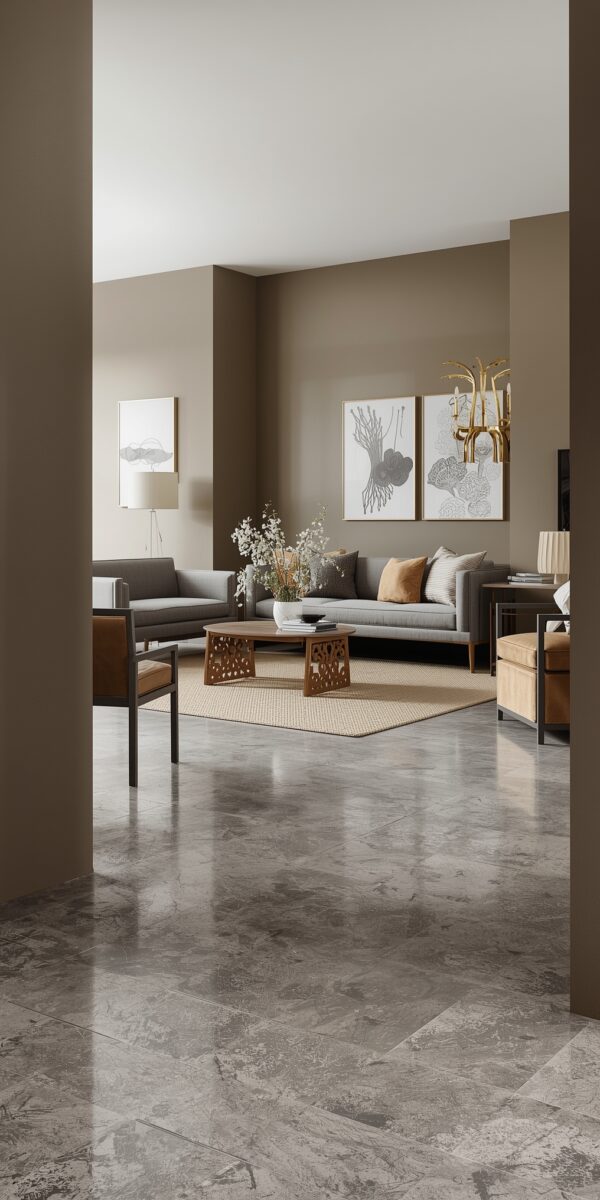 Greige—that perfect blend of gray and beige—is the ultimate harmonious choice with gray floors.