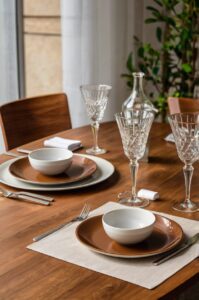 For a coordinated look throughout your dining space, rectangular placemats can echo rectangular elements elsewhere in the room.
