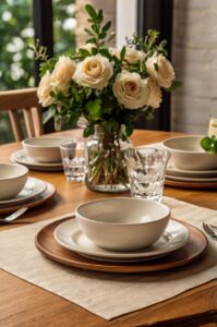 This intentional shape contrast creates visual interest and makes your table setting feel thoughtfully designed.
