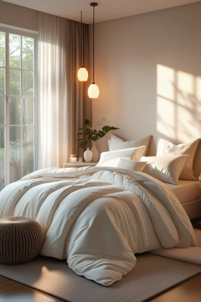 Choose white, cream, or light beige to keep the airy, peaceful aesthetic.