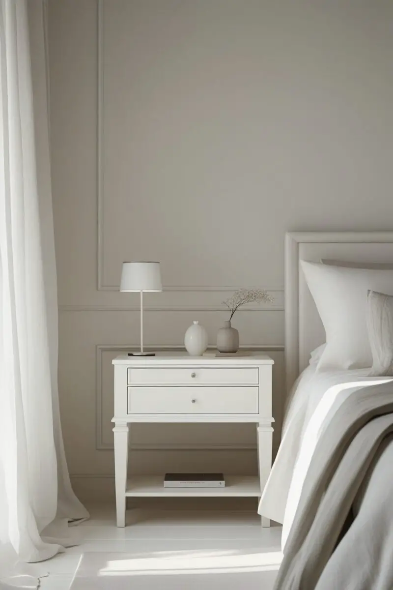 Choose nightstand decor in neutral tones that complement your white bedding.