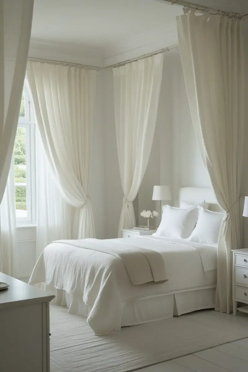 13 White Wallpaper Ideas to Brighten Any RoomHang Soft, Flowing Curtains