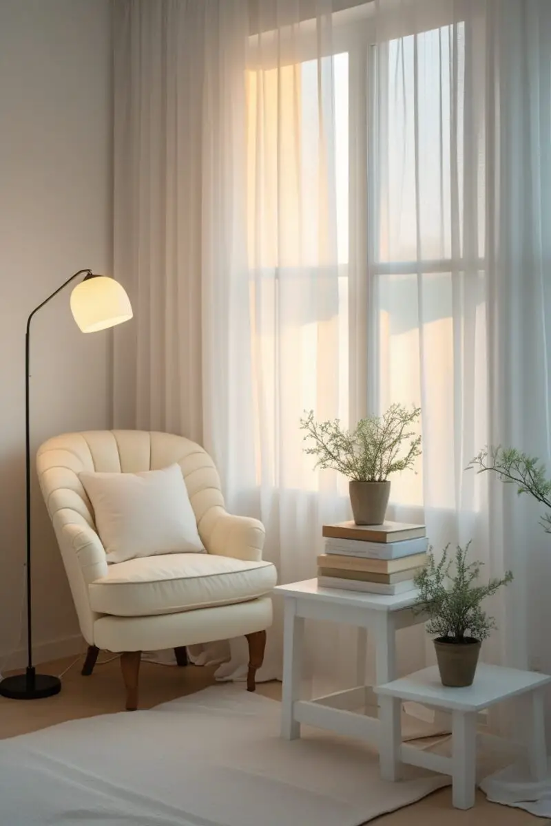 Personal Hack: Use a vintage chair from a thrift store and reupholster it in a soft neutral fabric for a unique, budget-friendly nook.