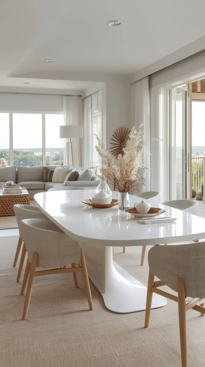 Capture the serene, breezy atmosphere of seaside living with white coastal dining tables that embody relaxed sophistication and effortless beach house charm.