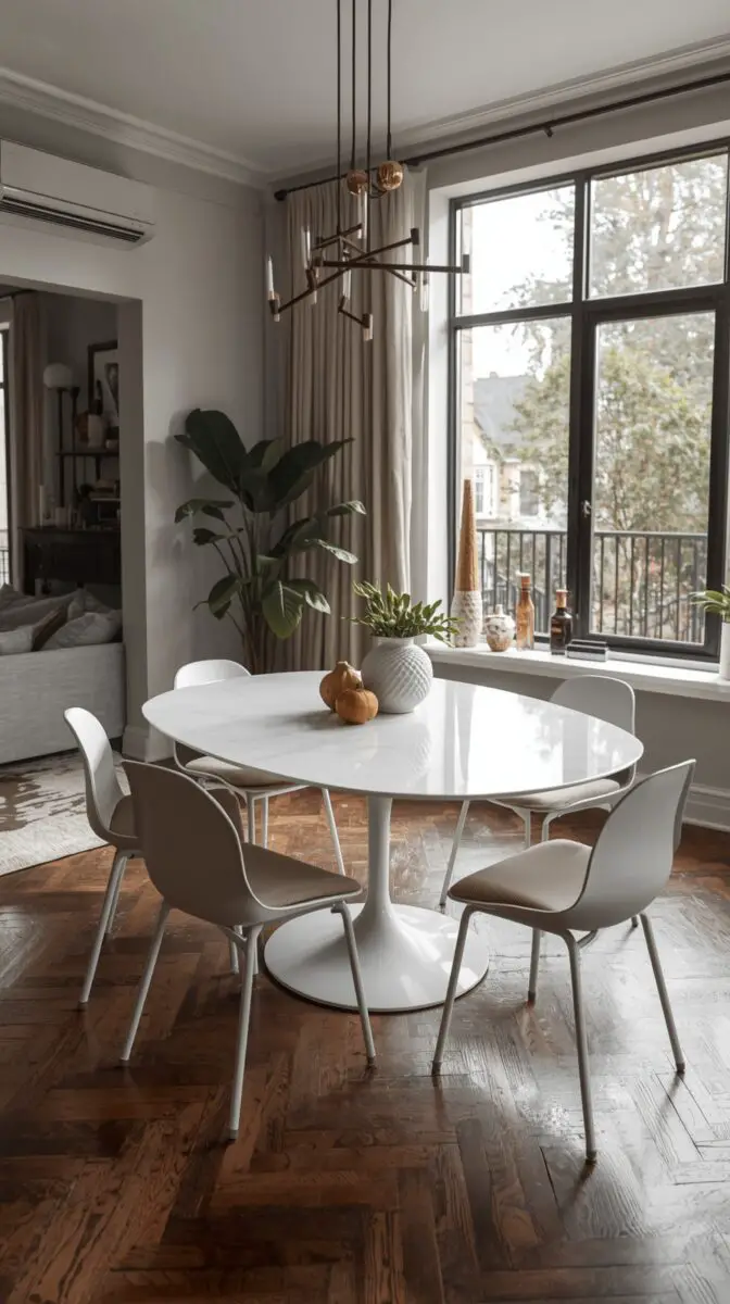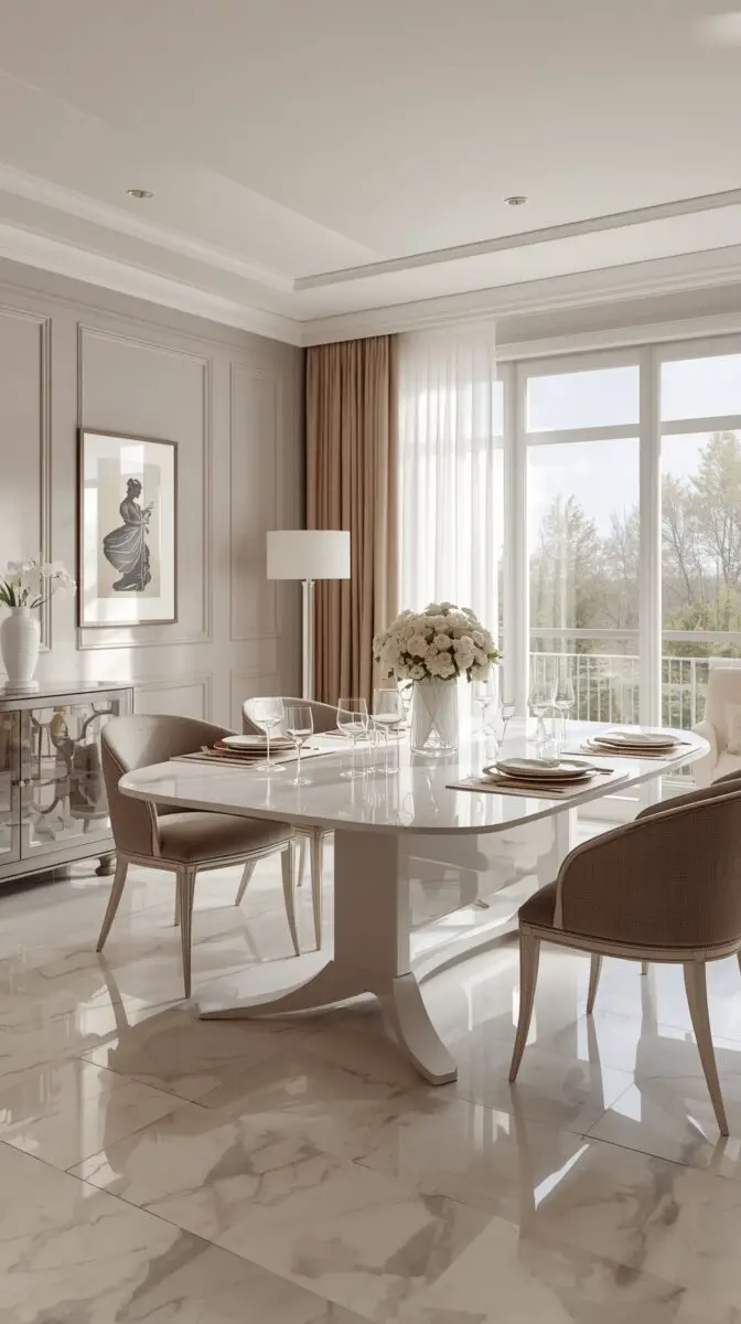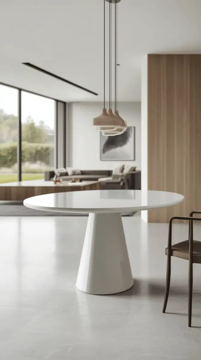 A modern minimalist white dining table strips away all the unnecessary elements, leaving you with pure, geometric perfection that makes your dining room feel like a high-end gallery.