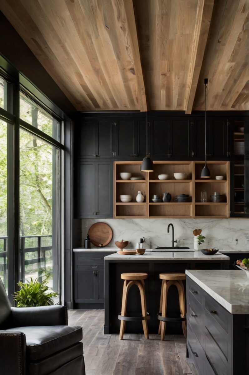 🏡 Start Creating FREE →Architectural Interest: White Oak Ceiling Beams Adding Warmth to Black Kitchen Design