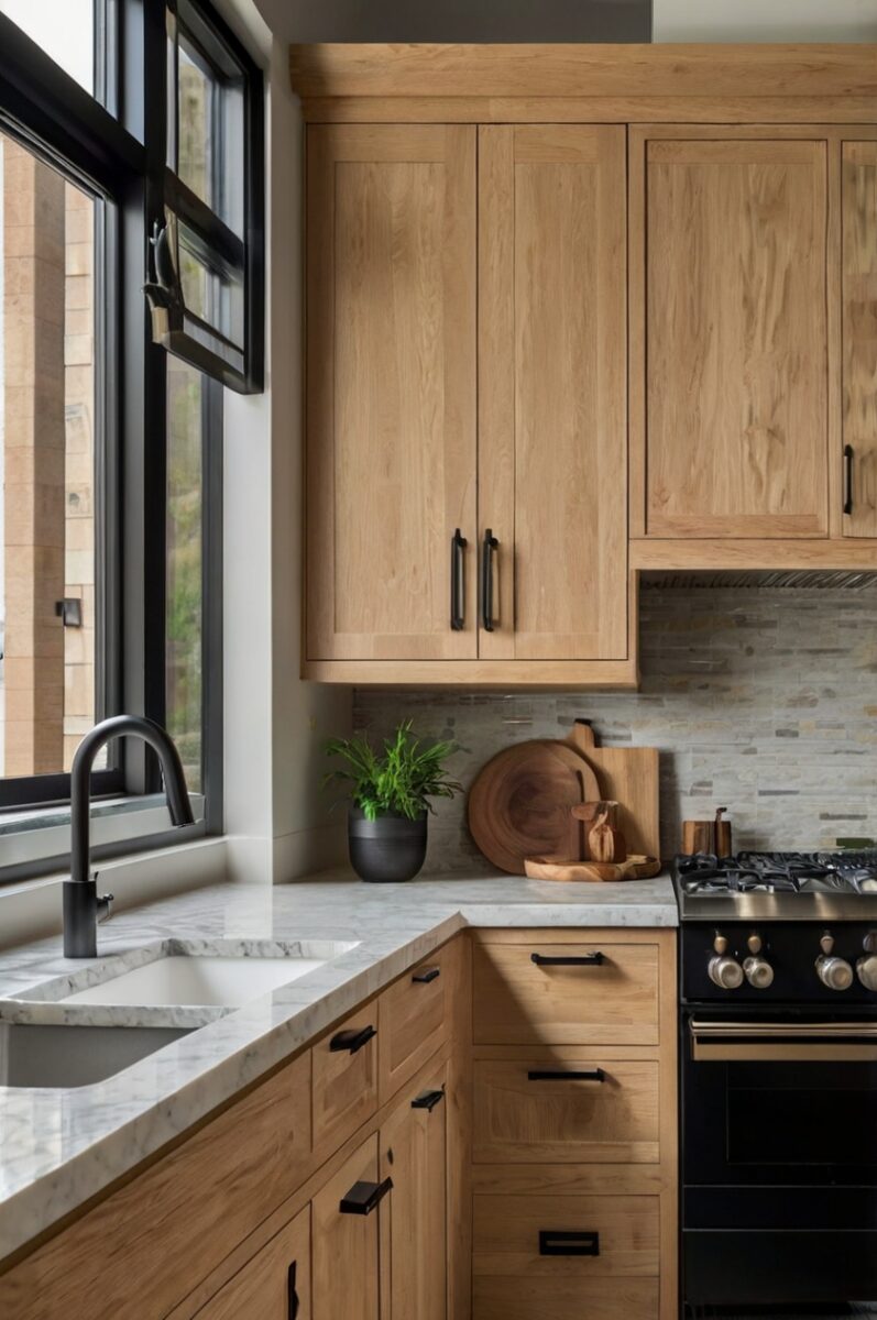 Bold Hardware Statement: Matte Black Accents on Natural White Oak Cabinets