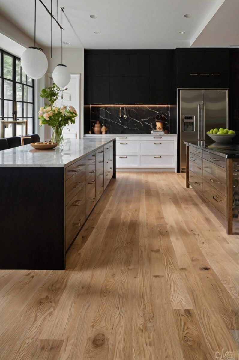 Foundation of Style: White Oak Hardwood Floors Anchoring Black Kitchen Elements