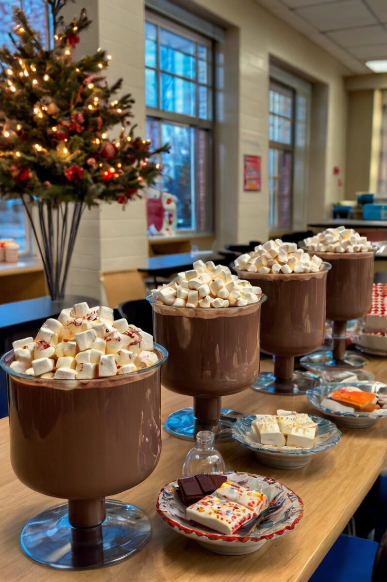Add a chalkboard sign with hot chocolate “menu” items written in colorful chalk, listing different flavors and seasonal specials.