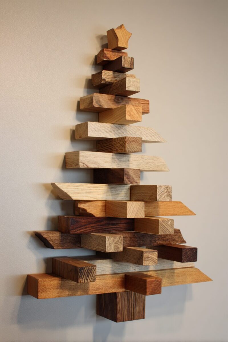 Mount the finished tree to a piece of plywood backing, then lean it against the wall or hang it as a dramatic focal point that’ll have everyone asking about your carpentry skills.