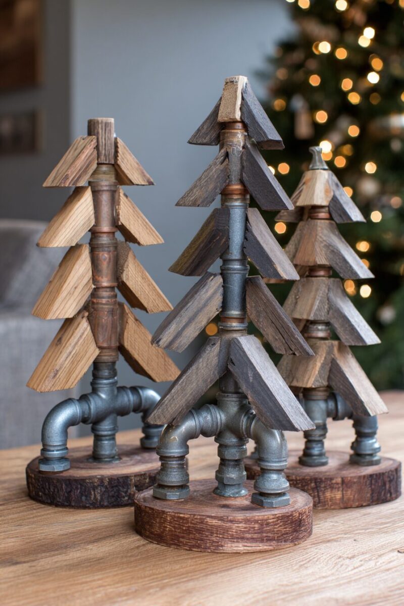 Combine the warmth of natural wood with the edgy appeal of black iron pipe for a tree that bridges rustic and industrial design styles.