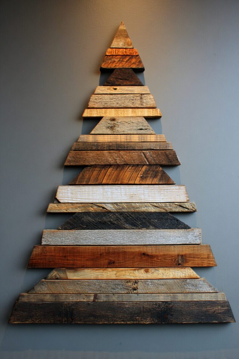 Leave gaps between boards to create negative space where you can hang ornaments or showcase the wall color behind the tree.