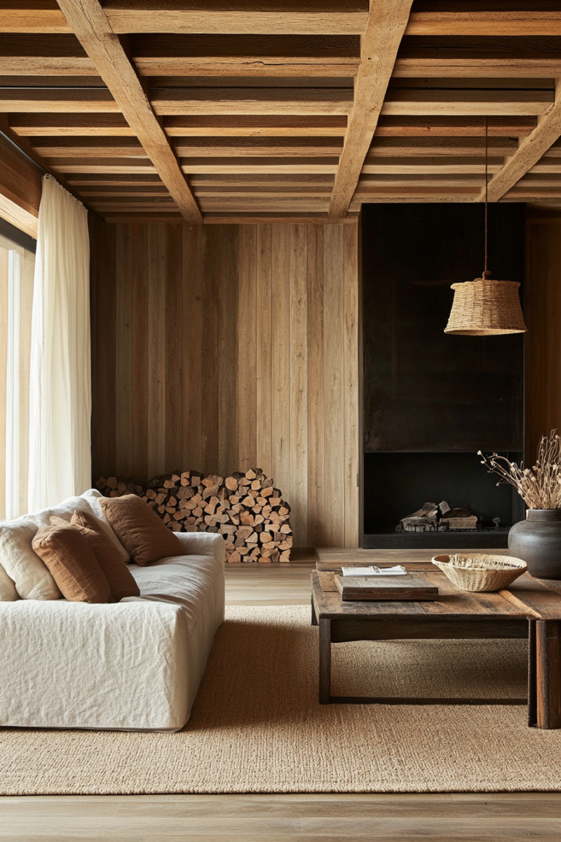 To complement the raw wood, stick with neutral or earthy tones in your decor.
