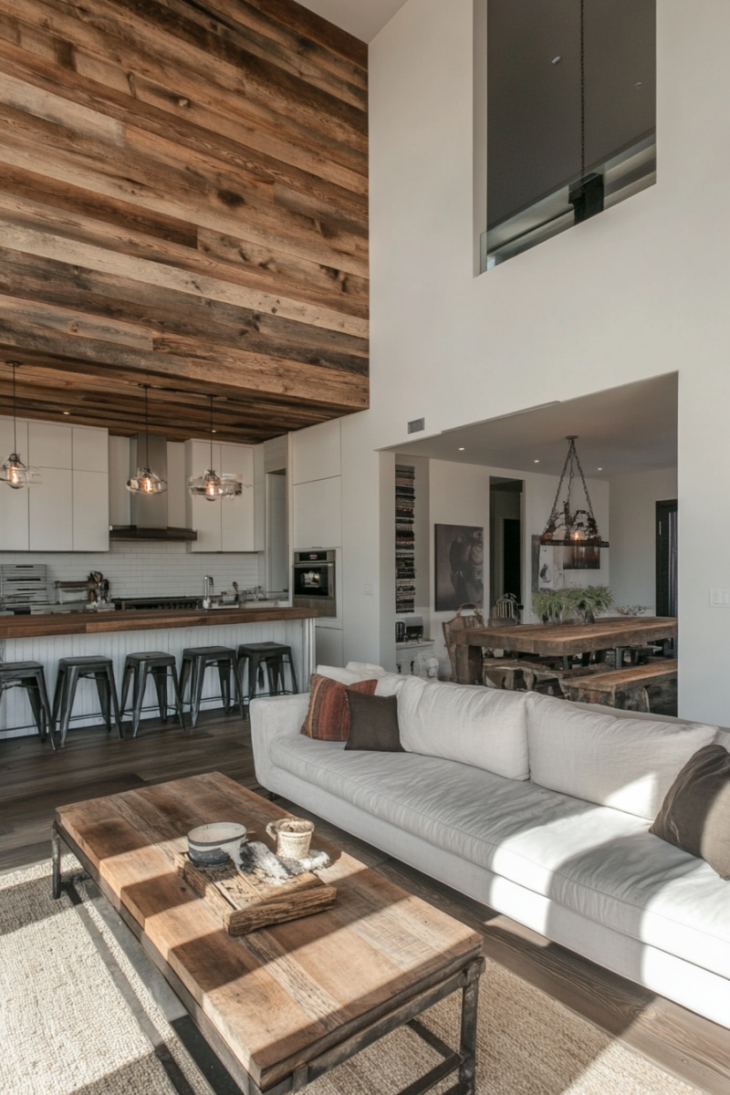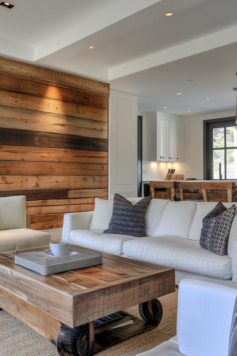 This design is all about embracing the charm and imperfections of reclaimed wood.