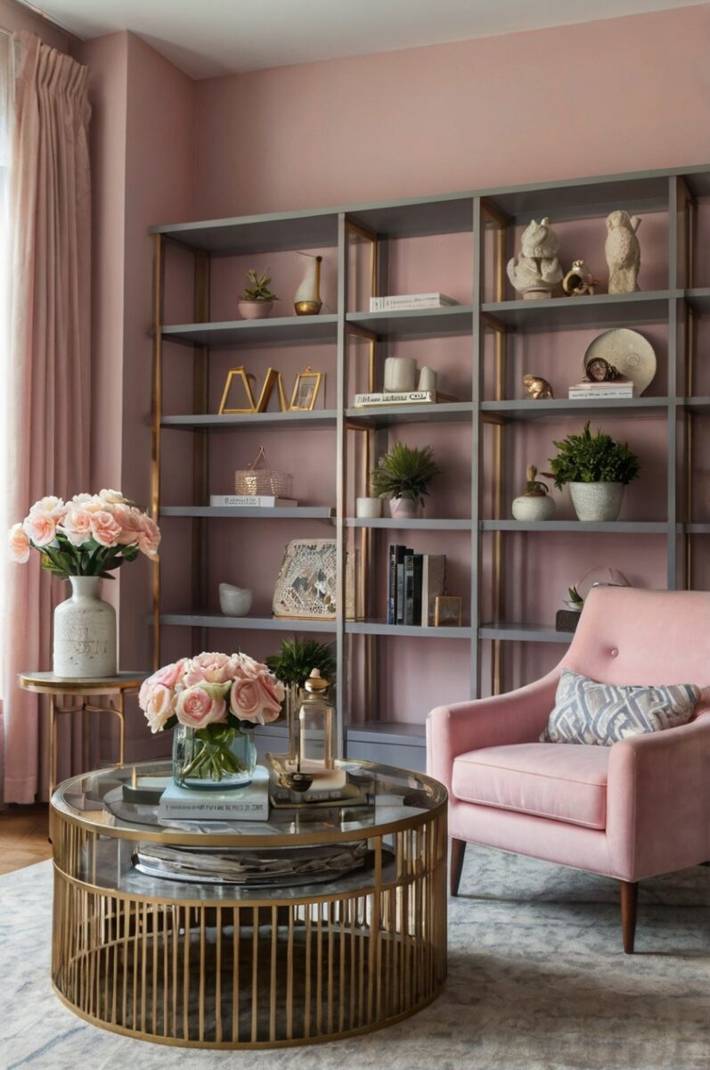 Baby Pink and Gray Bookshelf Design