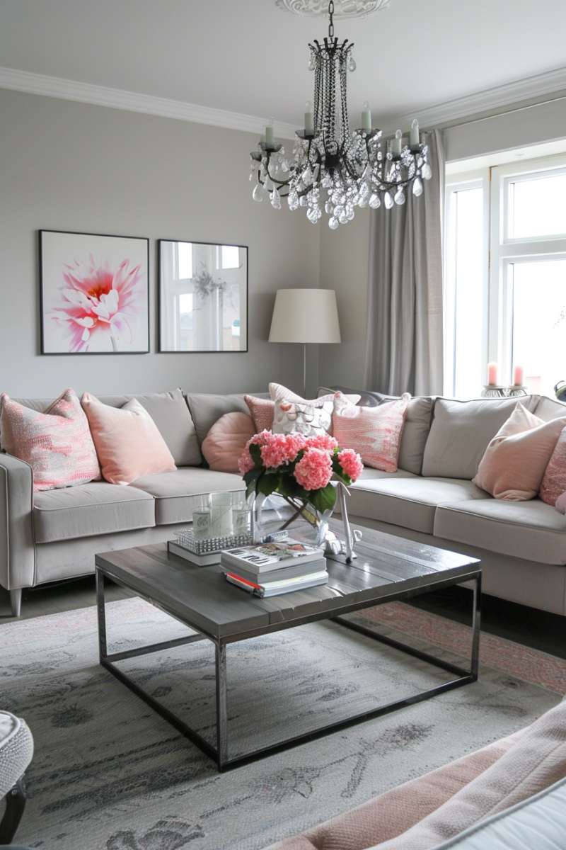 If you’re looking to transform your living oom into a cozy haven, pink and gray is the perfect color combo to achieve that balance of warmth and sophistication.