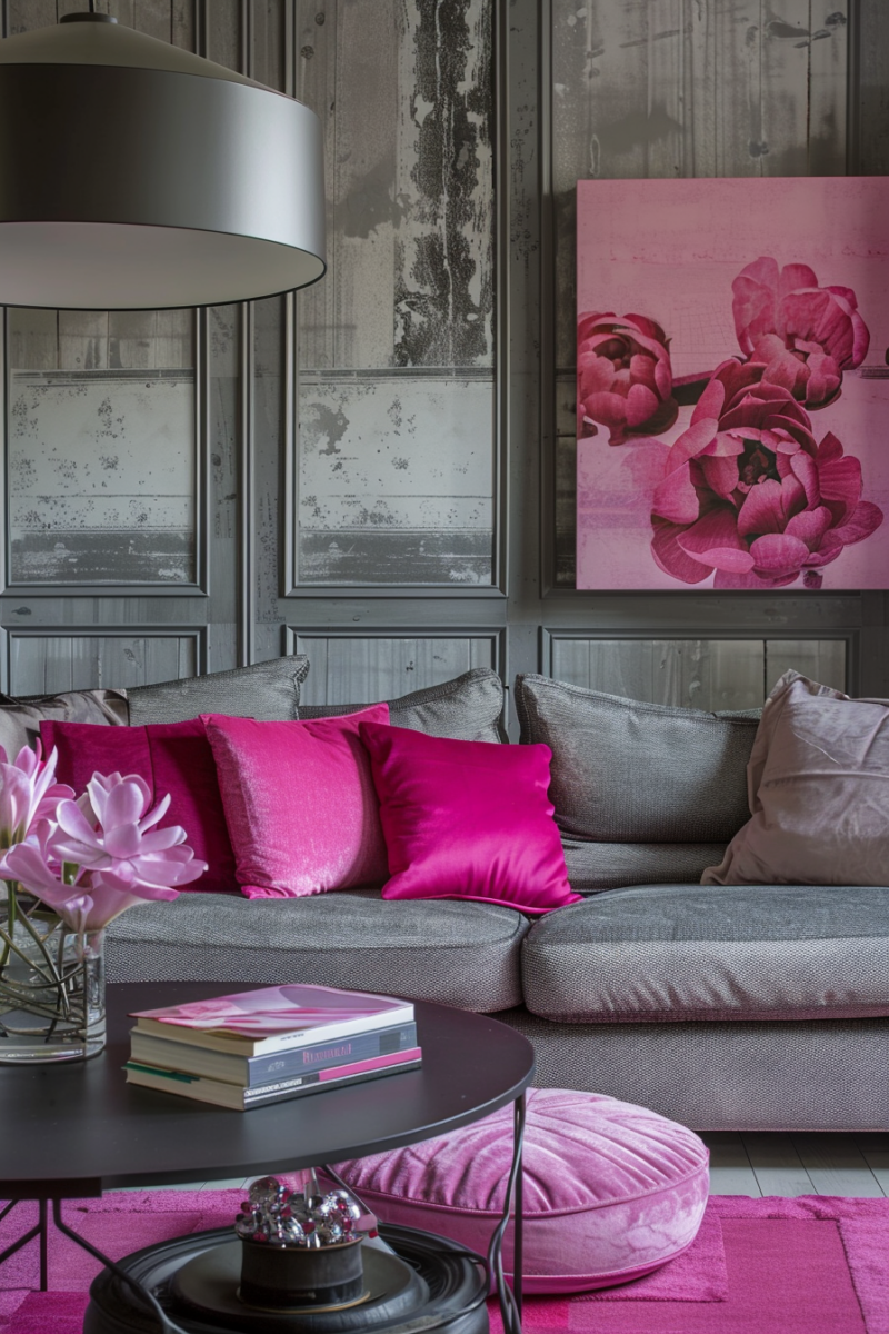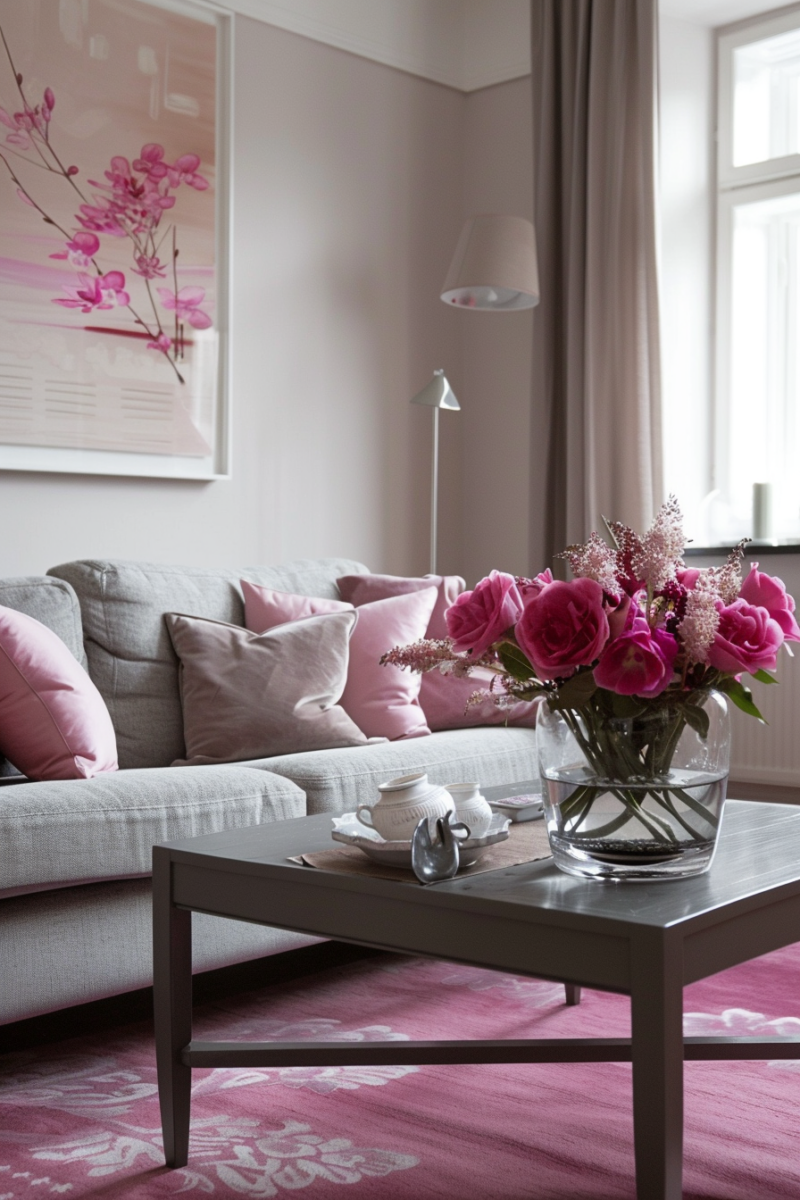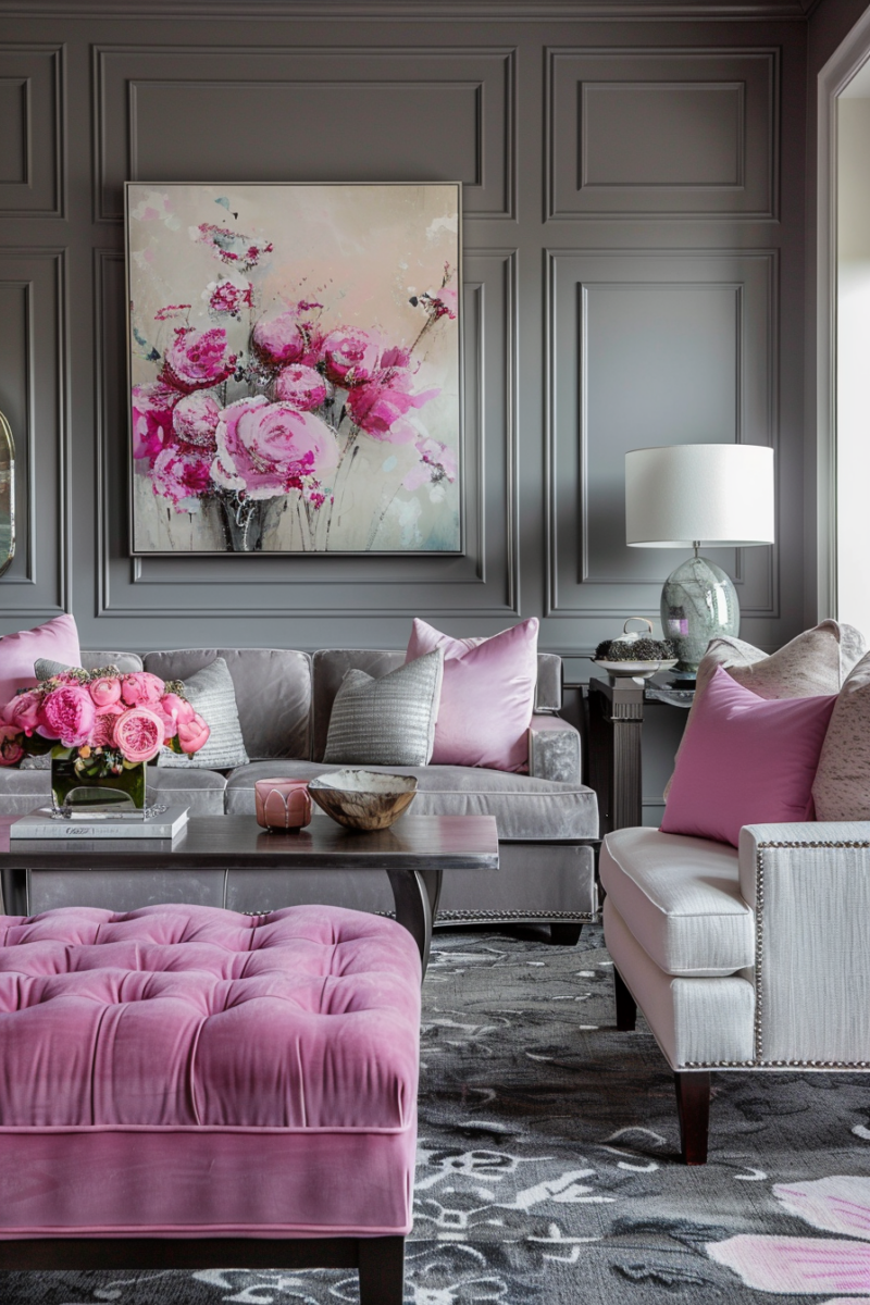 The gray provides a sleek, modern backdrop, allowing the pink to stand out without overwhelming the senses.