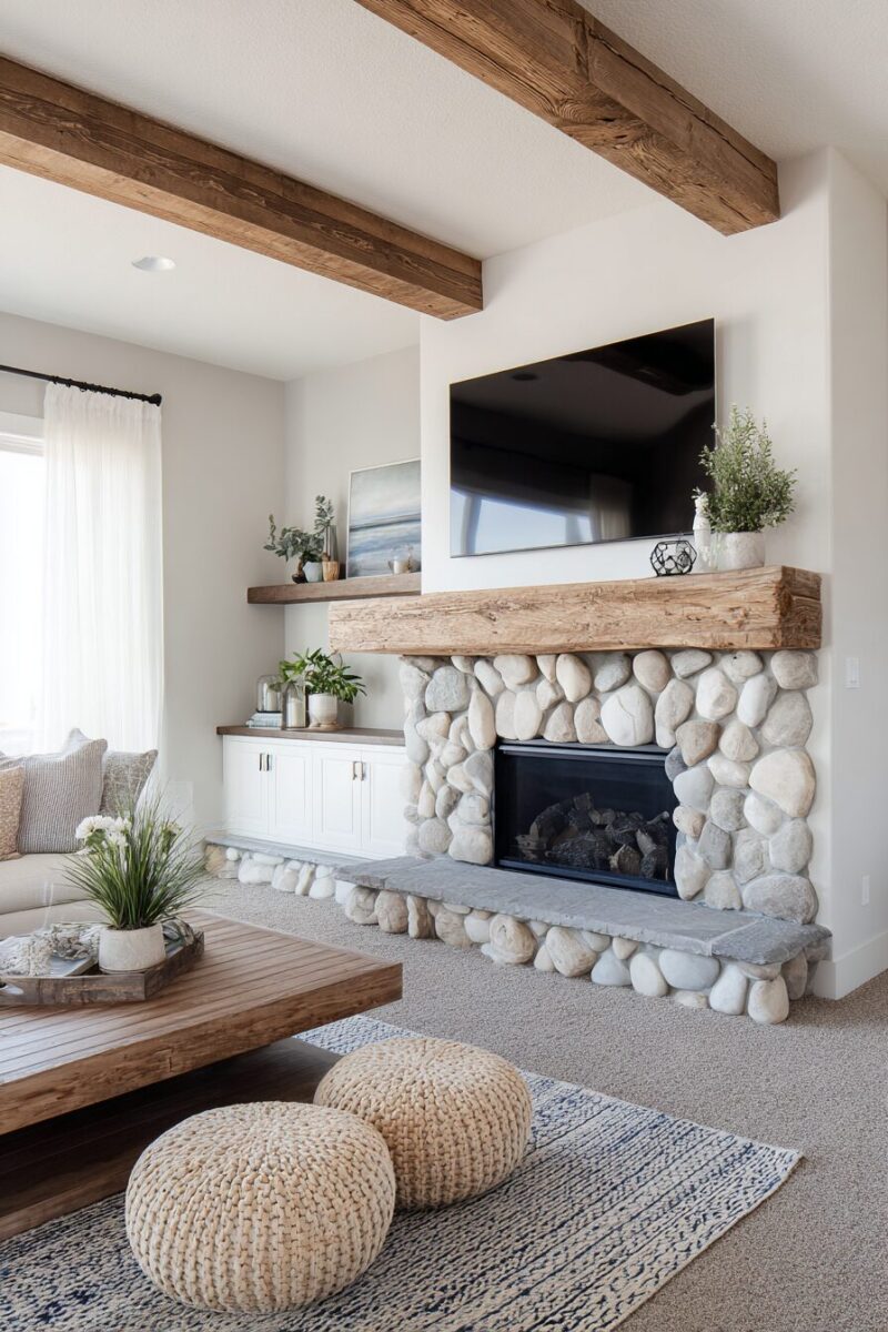Rustic Wood Beam Mantel: Bringing Farmhouse Charm to Modern Living