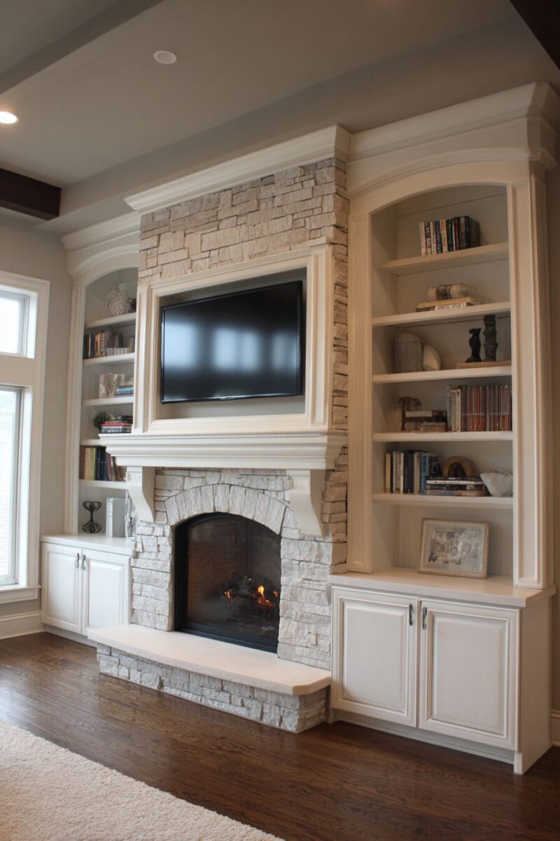 Your fireplace becomes the stunning centerpiece, while the surrounding cabinetry provides all the functionality you need for modern living.