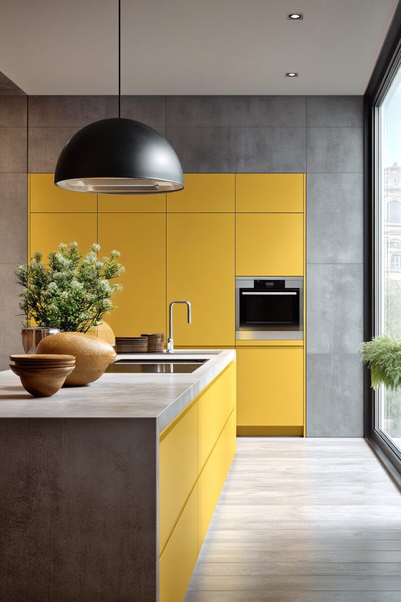 Your kitchen immediately gains a high-end, architectural quality with matte yellow, as the finish absorbs and diffuses light rather than reflecting it harshly.