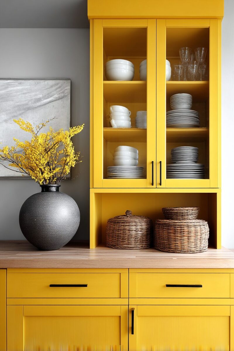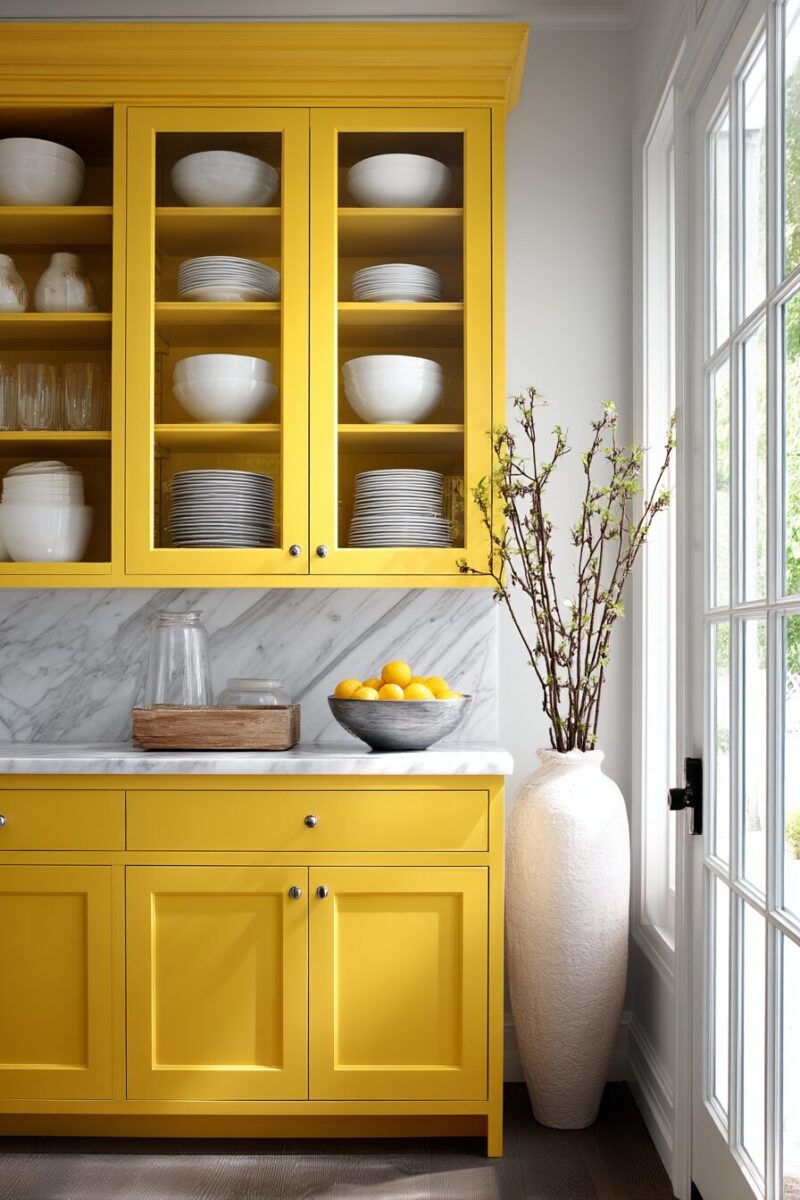 Yellow Cabinets with Glass Fronts: Display-Worthy Style